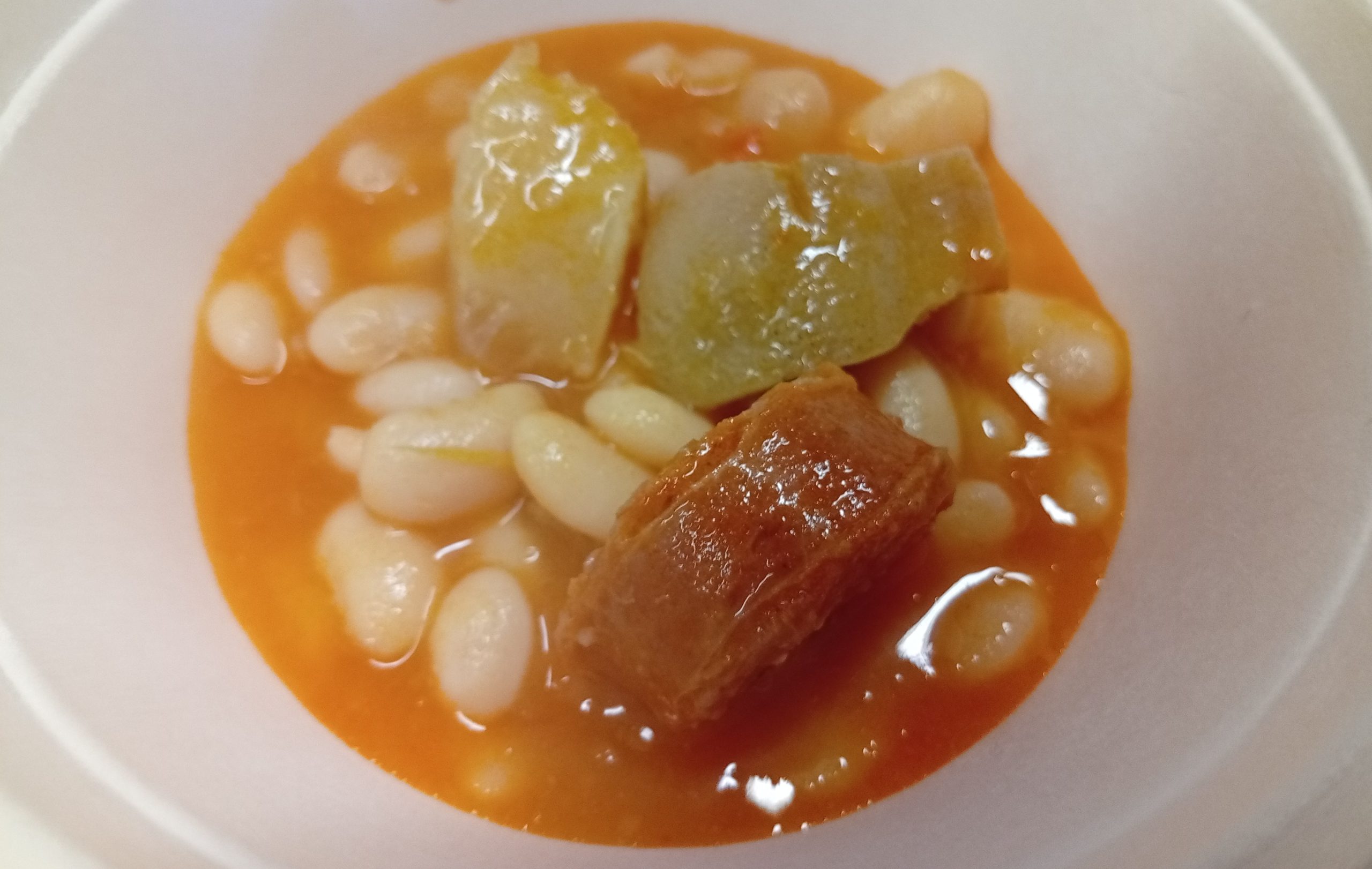 Judías blancas de cielos de Ascara con chorizo, careta y tocino rancio.