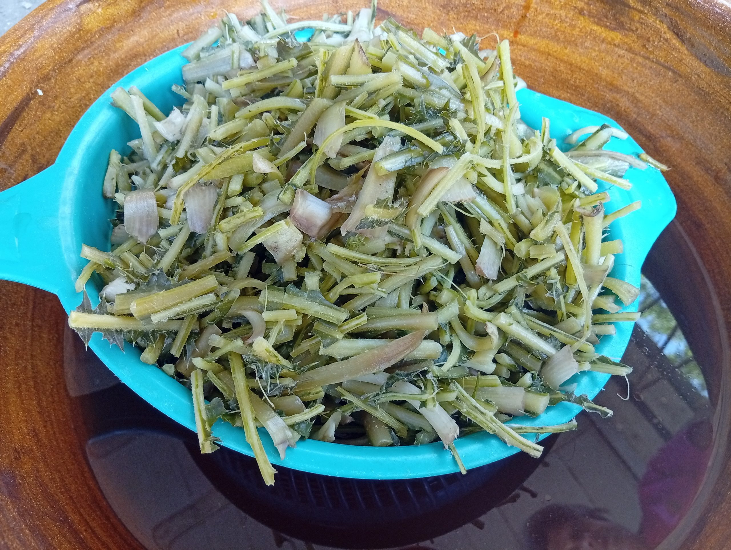 2. Limpiar los cardillos, lavar y cocer en agua unos minutos, escurrir, refrescar y reservar.